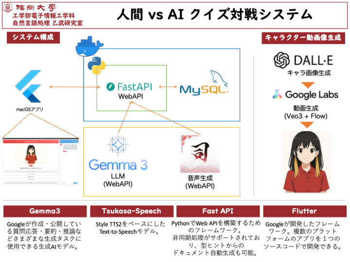 【人間 vs AI クイズ対戦システム】は、電子情報工学科に関するクイズでAIと対戦できるシステムです。